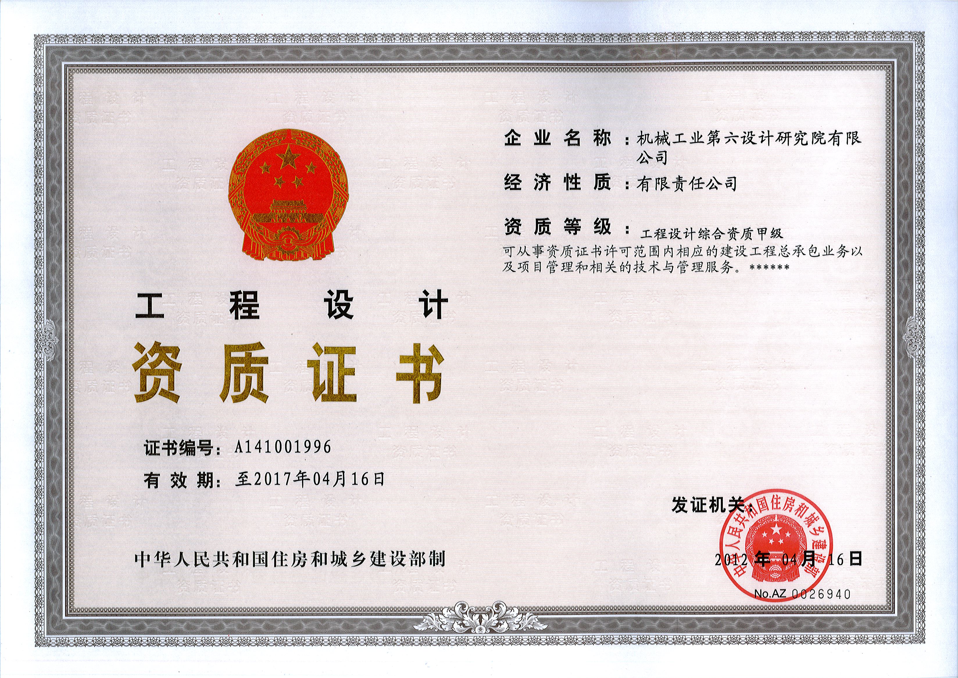 機(jī)械六院工程設(shè)計(jì)綜合資質(zhì)...