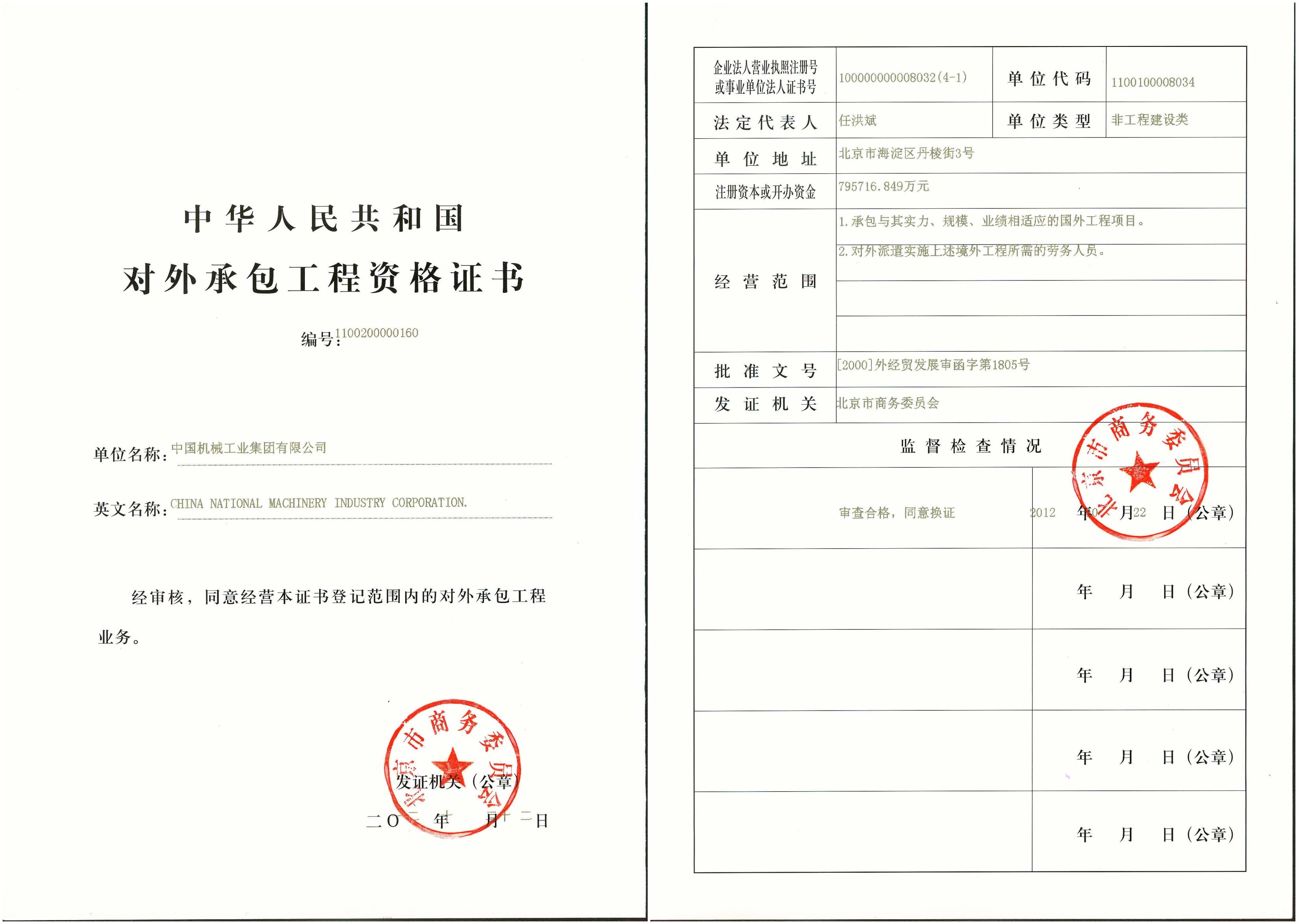 國(guó)機(jī)集團(tuán)對(duì)外承包工程資格證書